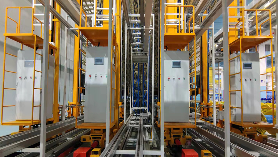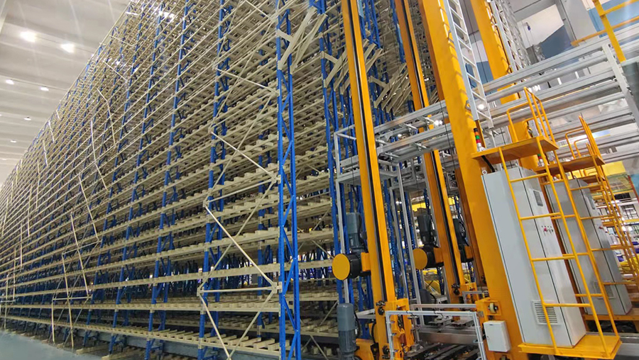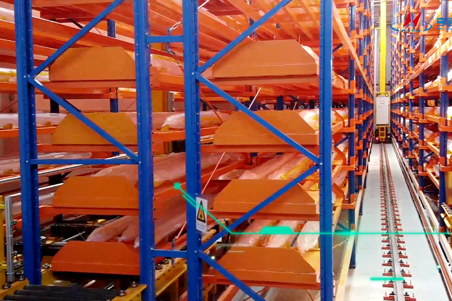 該客戶是一家主要主要從事光纖預制棒的研發、生產和銷售的國家級高新技術企業,主導產品涵蓋了光纖預制棒和光纖、光纜。客戶需求為光纖預制棒的儲存,進出庫、生產線對接。產線節拍光纖預制棒各90盤/h,立庫能力為 450盤/h,24小時/天制