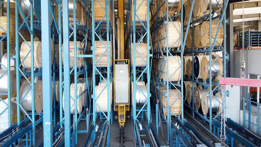 客戶是一家主要從事從事從事銅桿、鋁桿、鋁合金桿生產(chǎn)加工銷售;銅絲、鋁絲、銅鋁合金桿、通信電纜及附件、電力電纜及附件銷售。客戶需求為盤具的儲(chǔ)存,進(jìn)出庫、生產(chǎn)線對(duì)接,解決原來采用盤具導(dǎo)軌庫存放盤具占地面積大的問題等問題。
